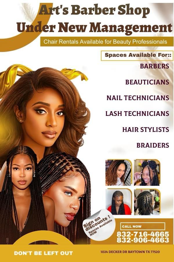 At BBCTX.net, we’re dedicated to connecting clients with skilled beauty professionals in their area. Whether you’re looking for a barber, nail tech, or beautician, our platform provides a seamless way to find and book top-rated services. We also empower beauty professionals by offering them a space to showcase their expertise, attract new clients, and grow their business. Based in Baytown, Texas, at 1024 Decker Drive, our mission is to support the local beauty industry by creating opportunities for professionals and enhancing the client experience.